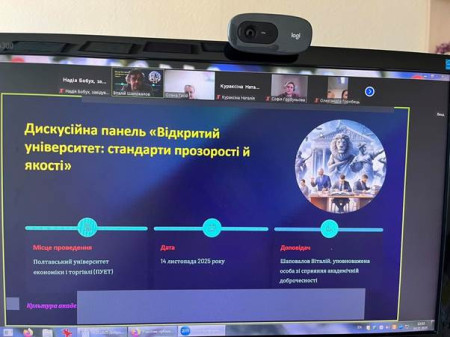 14 листопада 2025 року здобувачі вищої освіти освітньої програми «Германські мови та літератури (переклад включно), перша – англійська» і науково-педагогічний склад кафедри української, іноземних мов та перекладу долучилися до дискусії «Відкритий університет: стандарти прозорості і якості».