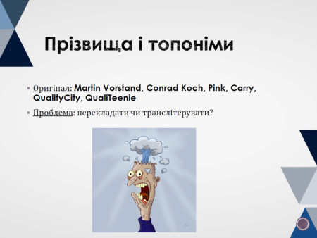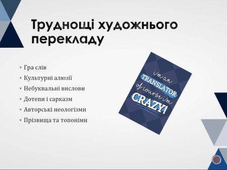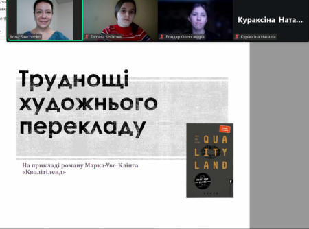 Студенти на реальних прикладах розглянули основні тонкощі художнього перекладу: гру слів, культурні алюзії, дотепи й сарказм, авторські неологізми, прізвища, топоніми та ін., а також запропонували свої варіанти перекладу.