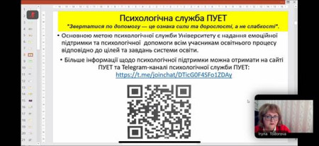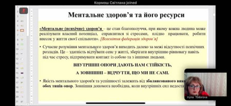 3 грудня 2025 року здобувачі вищої освіти освітньої програми «Германські мови та літератури (переклад включно), перша – англійська», науково-педагогічний склад кафедр української, іноземних мов та перекладу й ділової іноземної мови долучилися до вебінару «Ментальне здоров’я як складова якості освіти: моніторинг та підтримка», проведеного Тодоровою І. С., к. психол. н., доц.