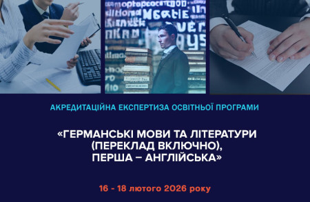 Відповідно до наказу Національного агентства із забезпечення якості вищої освіти від 3 лютого 2026 року № 197 – Е в Полтавському університеті економіки і торгівлі з 16 по 18 лютого 2026 року буде проведена акредитаційна експертиза в дистанційному форматі освітньої програми «Германські мови та літератури (переклад включно), перша – англійська» за спеціальністю 035 Філологія за першим (бакалаврським) рівнем вищої освіти.
