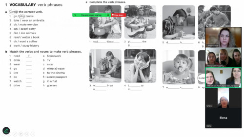 У практичній частині слухачі працювали з корисними дієслівними словосполученнями, виконували вправи на співвіднесення, вибір правильної форми дієслова та доповнення фраз за зображеннями. Такий формат роботи сприяв активізації лексики й кращому засвоєнню граматичного матеріалу.